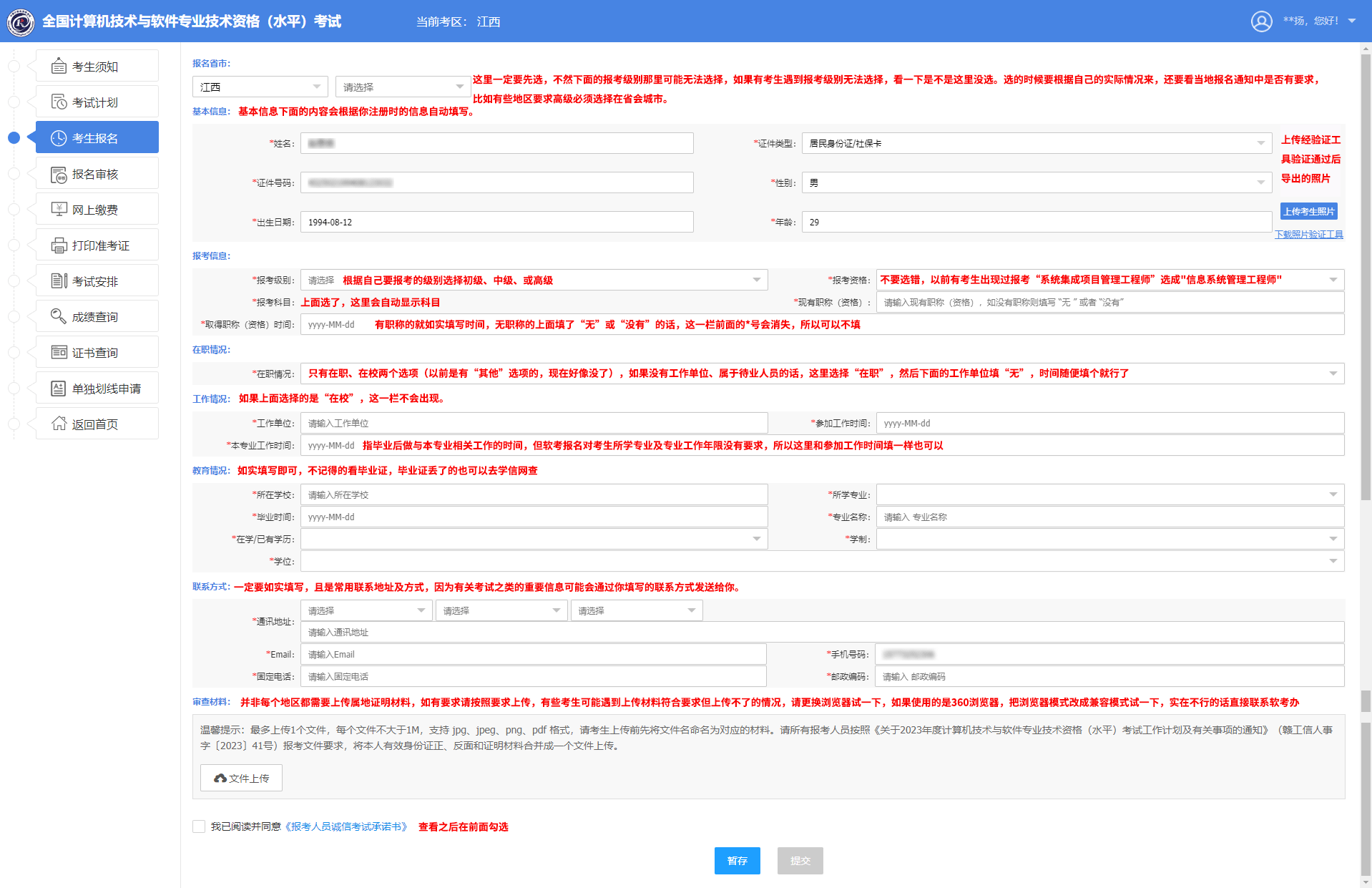 ⑧填寫報名信息、上傳報名照片、上傳證明材料(并非所有地區(qū)都需要上傳證明材料)【點(diǎn)擊查看報名信息填寫圖文說明】